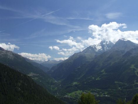 Ebéd után folytattam a gurulást egészen Martigny-ig, ahol egy főútra tértem rá, ami kelet-északkelet felé tartott következő célpontjaim felé. Az út első jónéhány kilométere nagyon kényelmesnek bizonyult, mivel kerékpársáv vezetett az út mindkét oldalán, ezért nemigen zavart a forgalom. A széles völgyben alma és körte ültetvények húzódtak, amíg a szem ellátott. Svájcnak ezen a részén még nem jártam, ezért elég meglepő volt, hogy mindenhol francia feliratok, hirdetések voltak, amikor betértem egy boltba, ott is franciául köszöntöttek.
